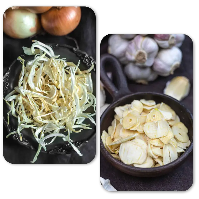 Our dehydrated onion and garlic are widely used in soups, sauces, seasonings, ready-to-eat meals, and spice blends. With a longer shelf life, consistent quality, and ease of use, they serve as a convenient alternative to fresh produce without compromising on taste or authenticity.